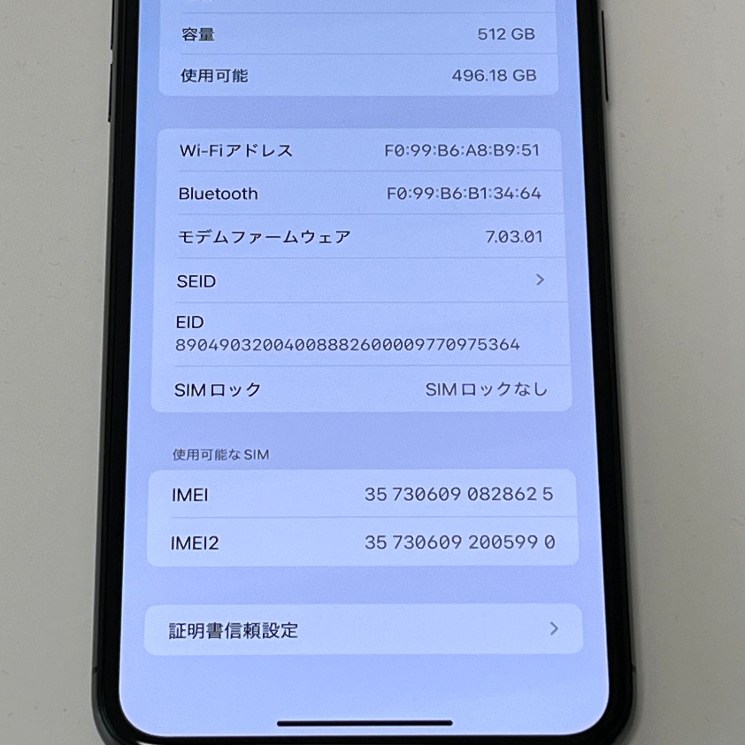 | 機種名 | iPhone XS Max |