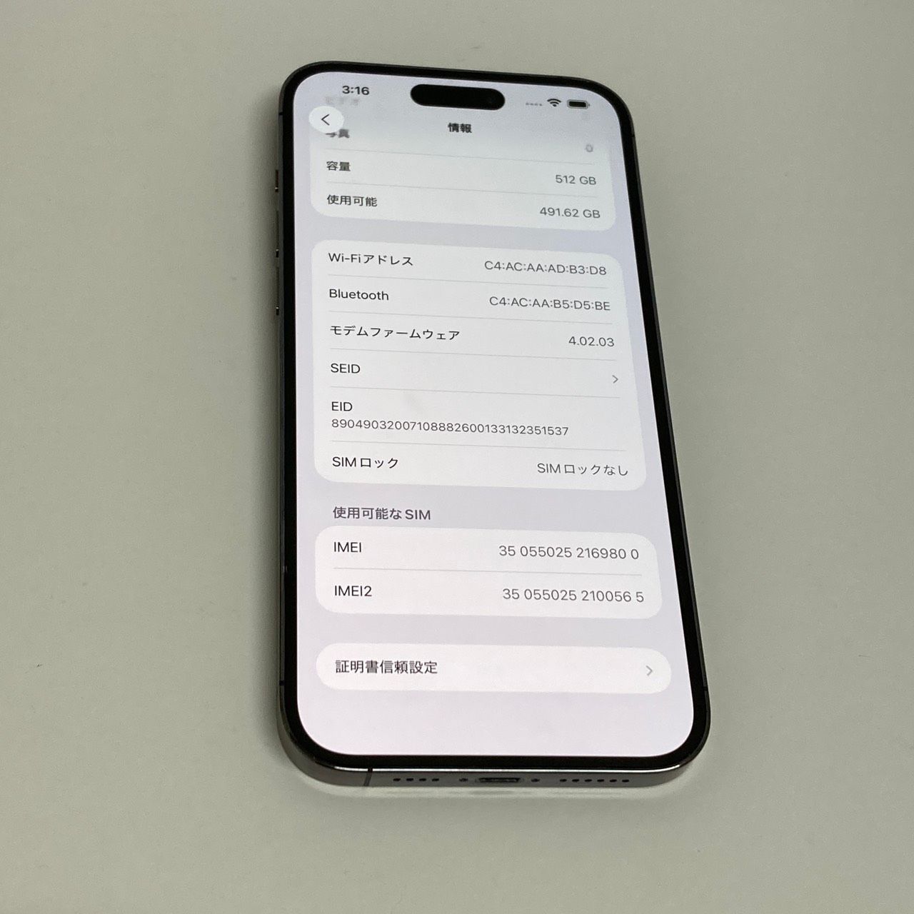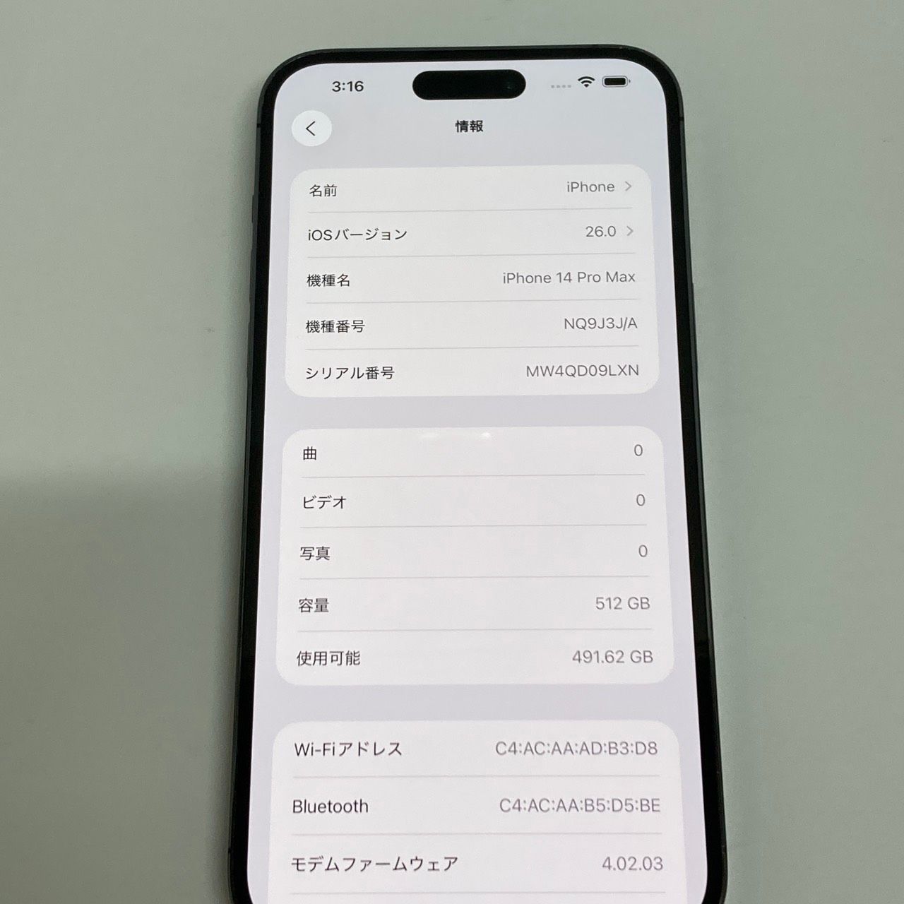 | 機種名 | iPhone14 Pro Max |