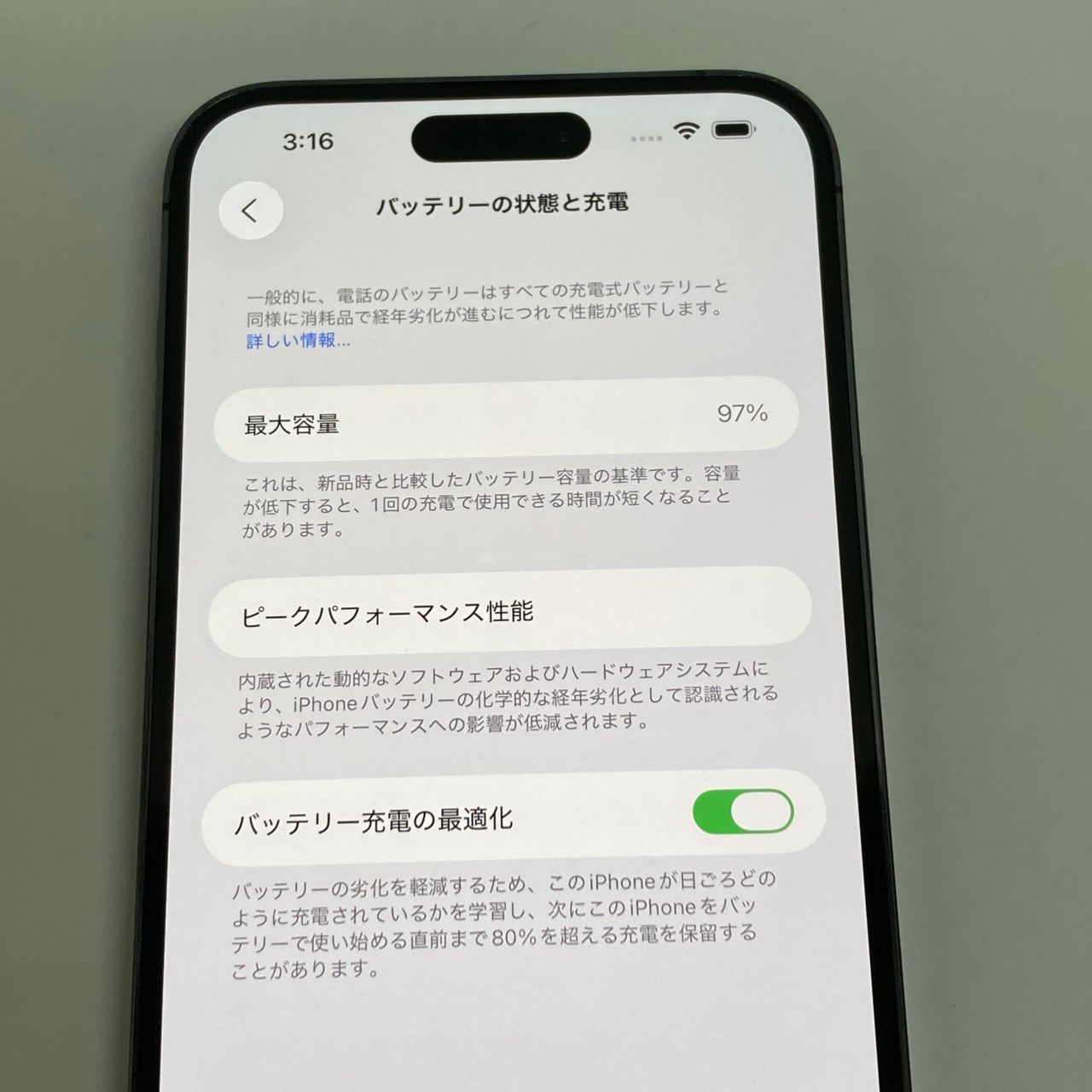 【バッテリーの状態】97%