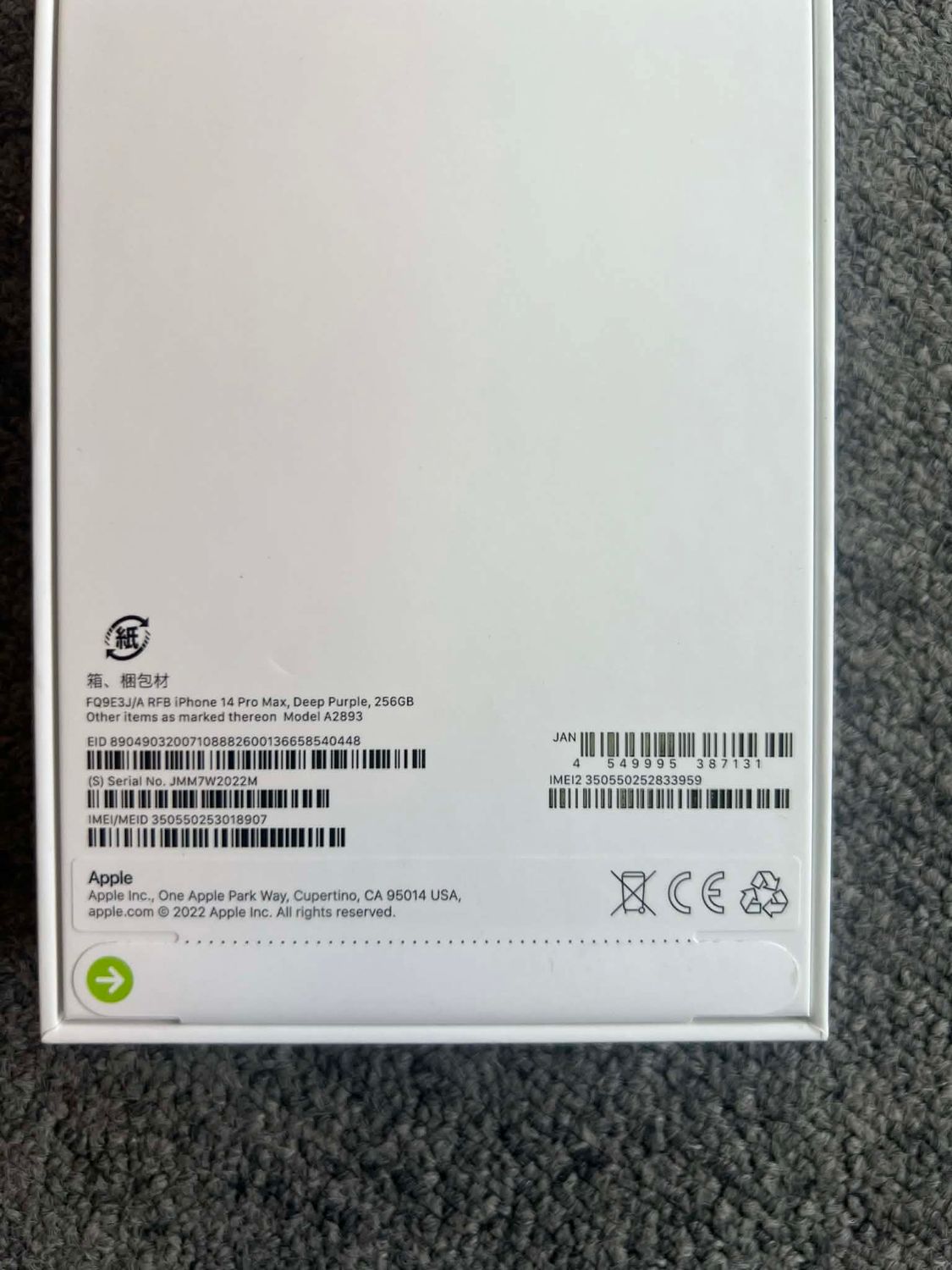 今日発送 新品未開封・iPhone 14 Pro Max 256Gb ディープ・パープル