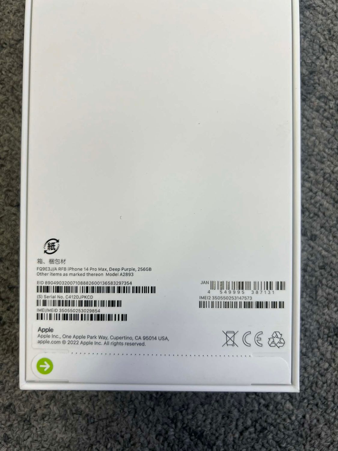 今日発送 新品未開封・iPhone 14 Pro Max 256Gb ディープ・パープル