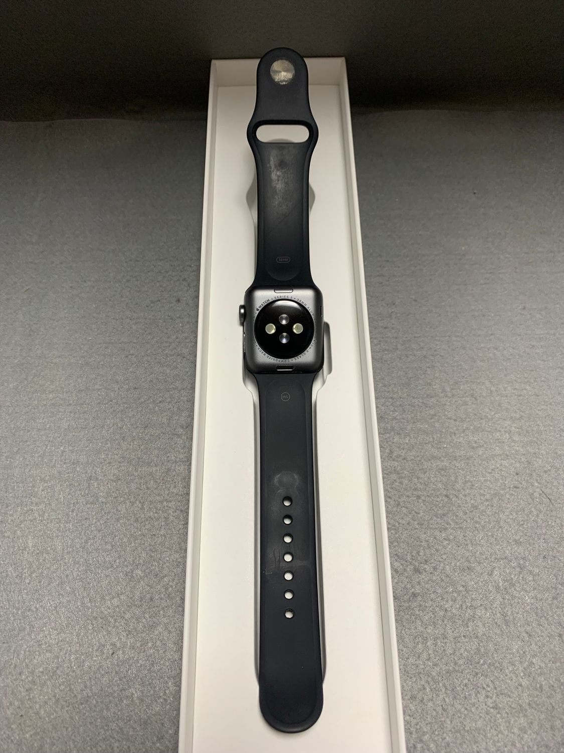 中古 国内版 Apple Watch Series3 GPS版 38mm スペースグレーアルミニウムとブラックスポーツバンド