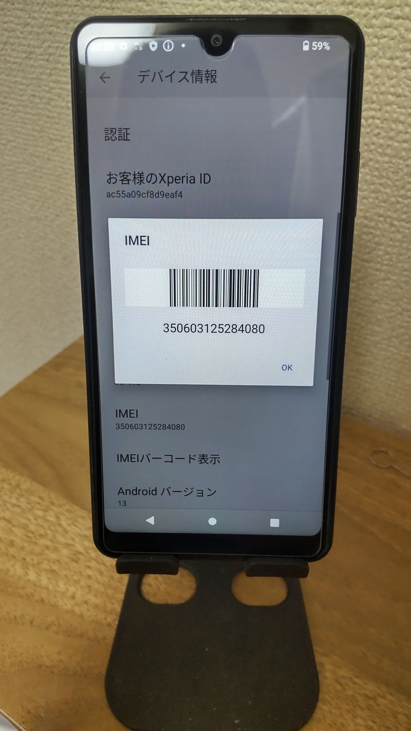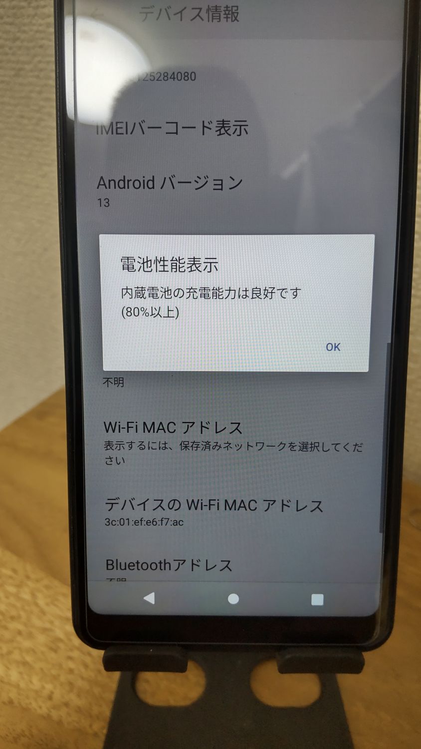 | IMEI番号 | 350603125284080 |