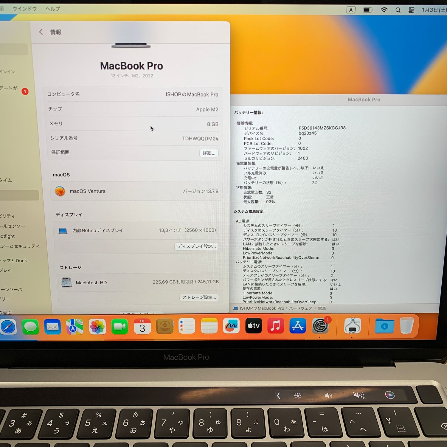 ・キーボード : JIS (日本語)