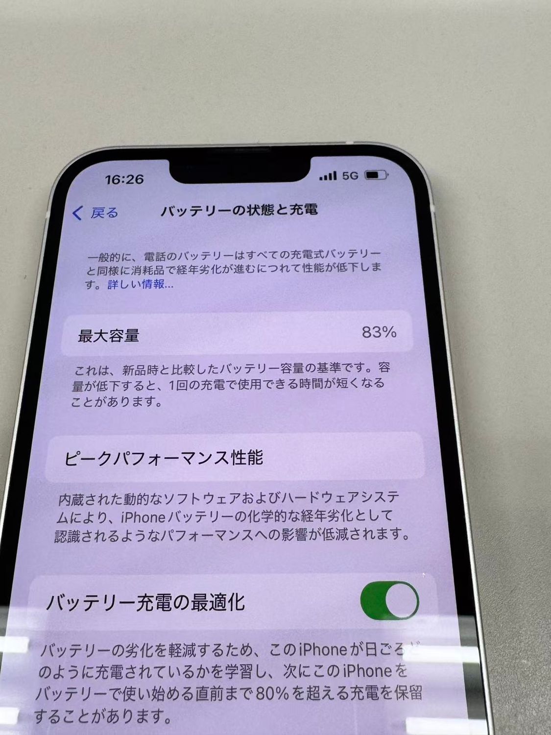 バッテリー最大容量表示:83%