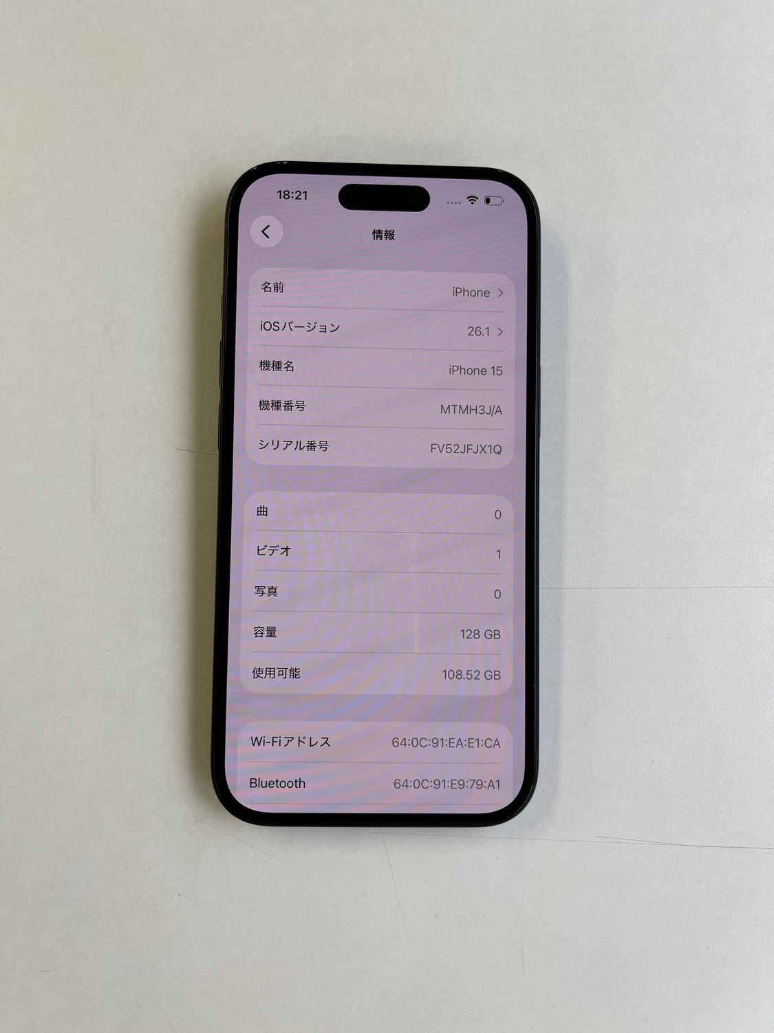 | 機種名 | iPhone15 |