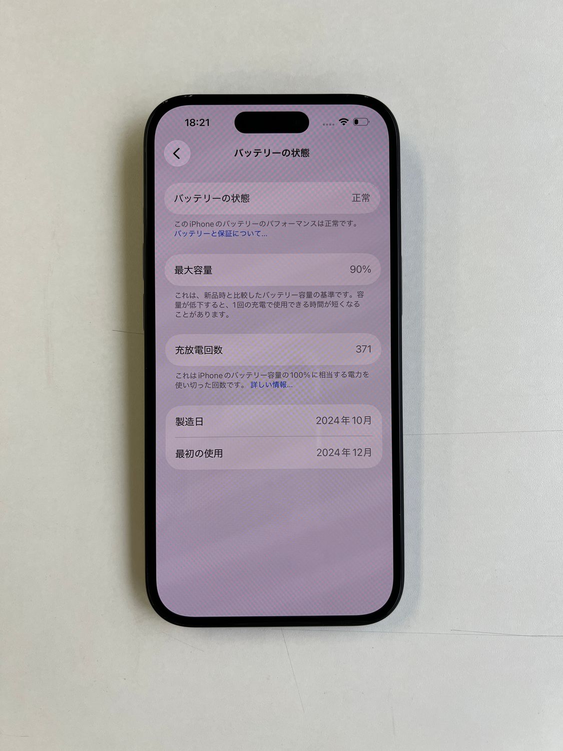 バッテリー最大容量: 90%