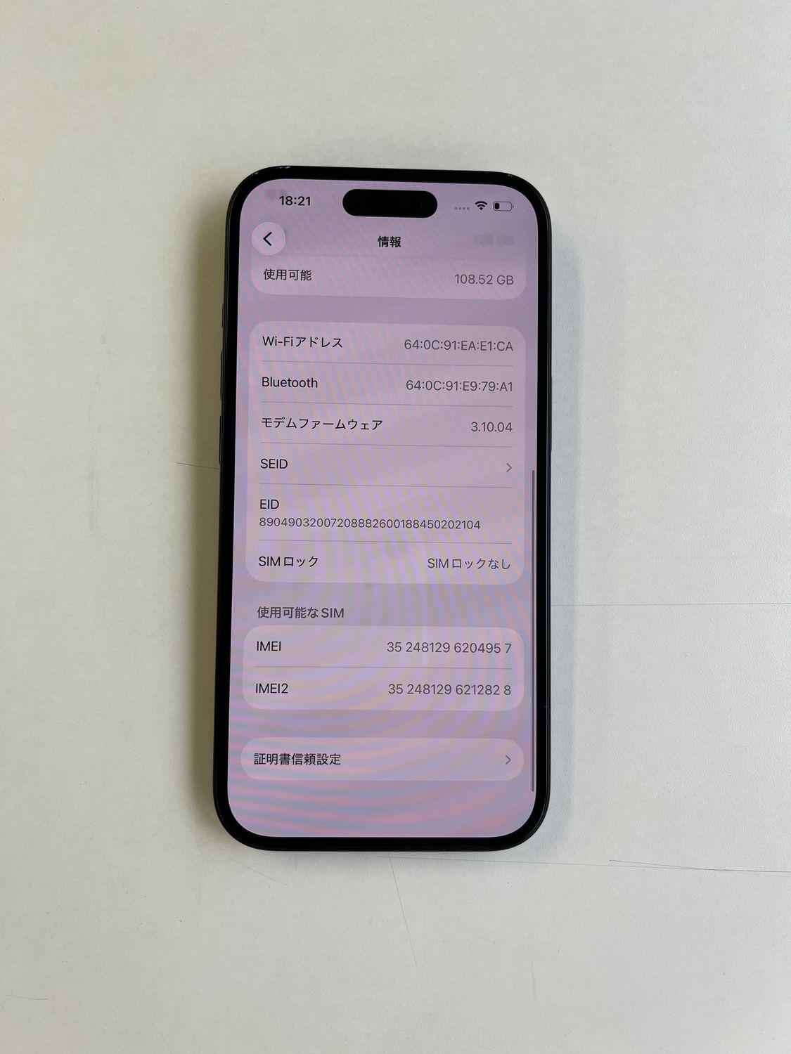 | IMEI番号 | 352481296204957 |