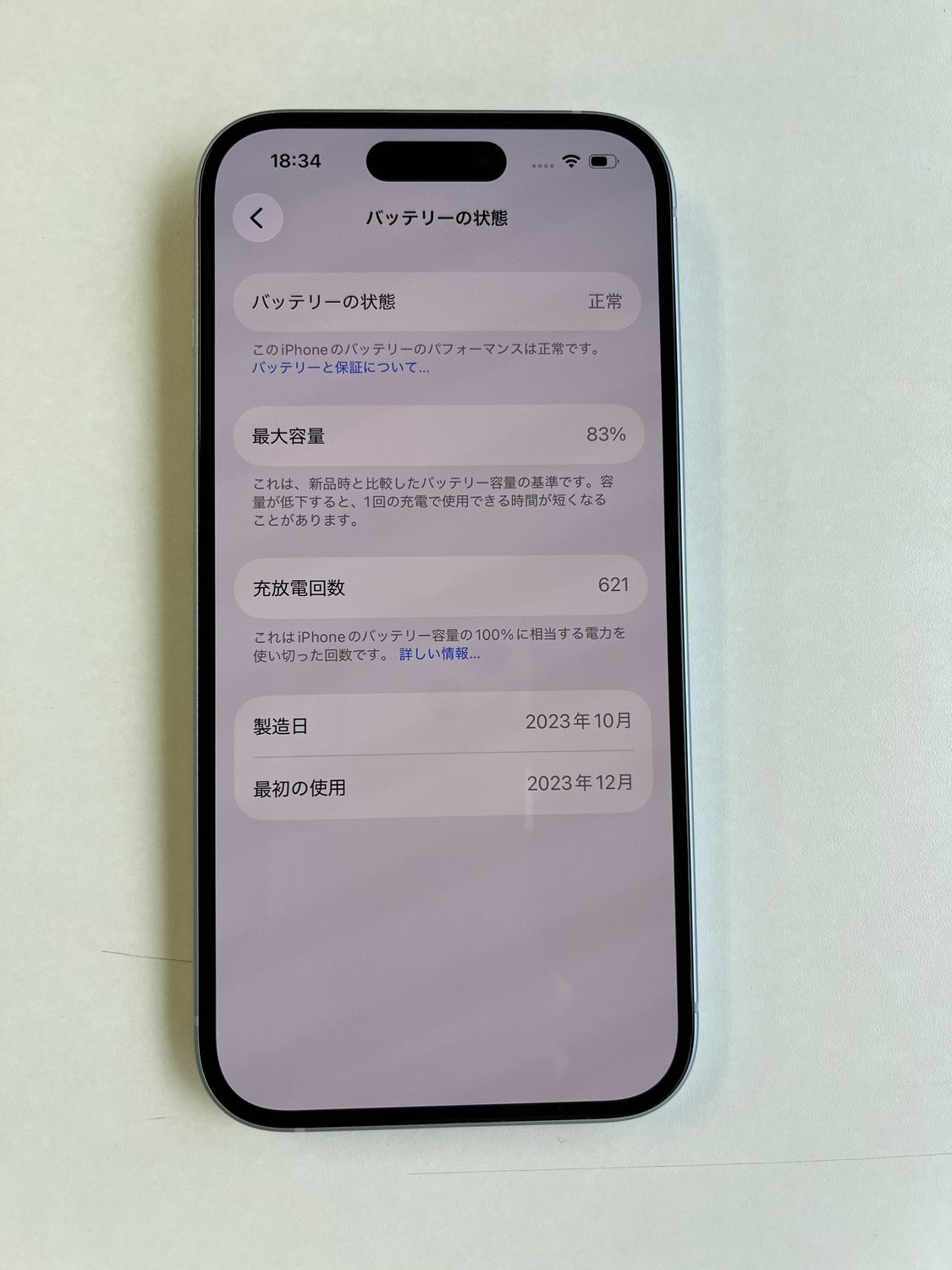 バッテリー最大容量: 83%