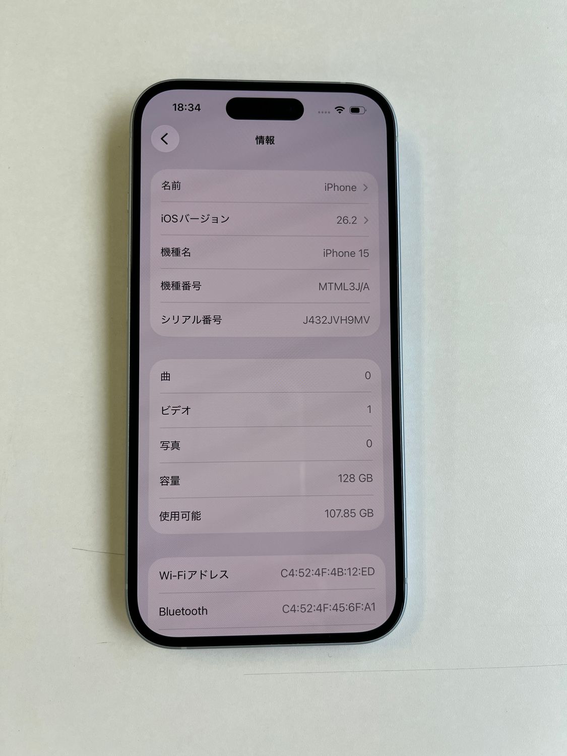 | 機種名 | iPhone15 |