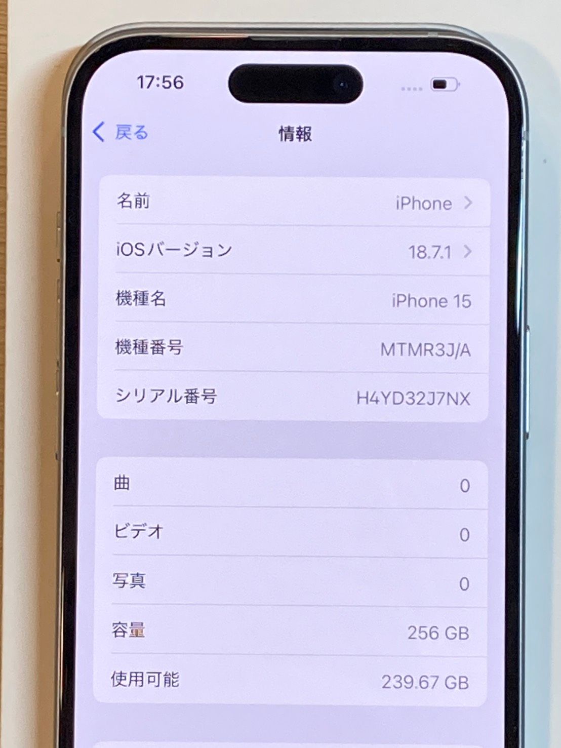 | 機種名 | iPhone15 |
