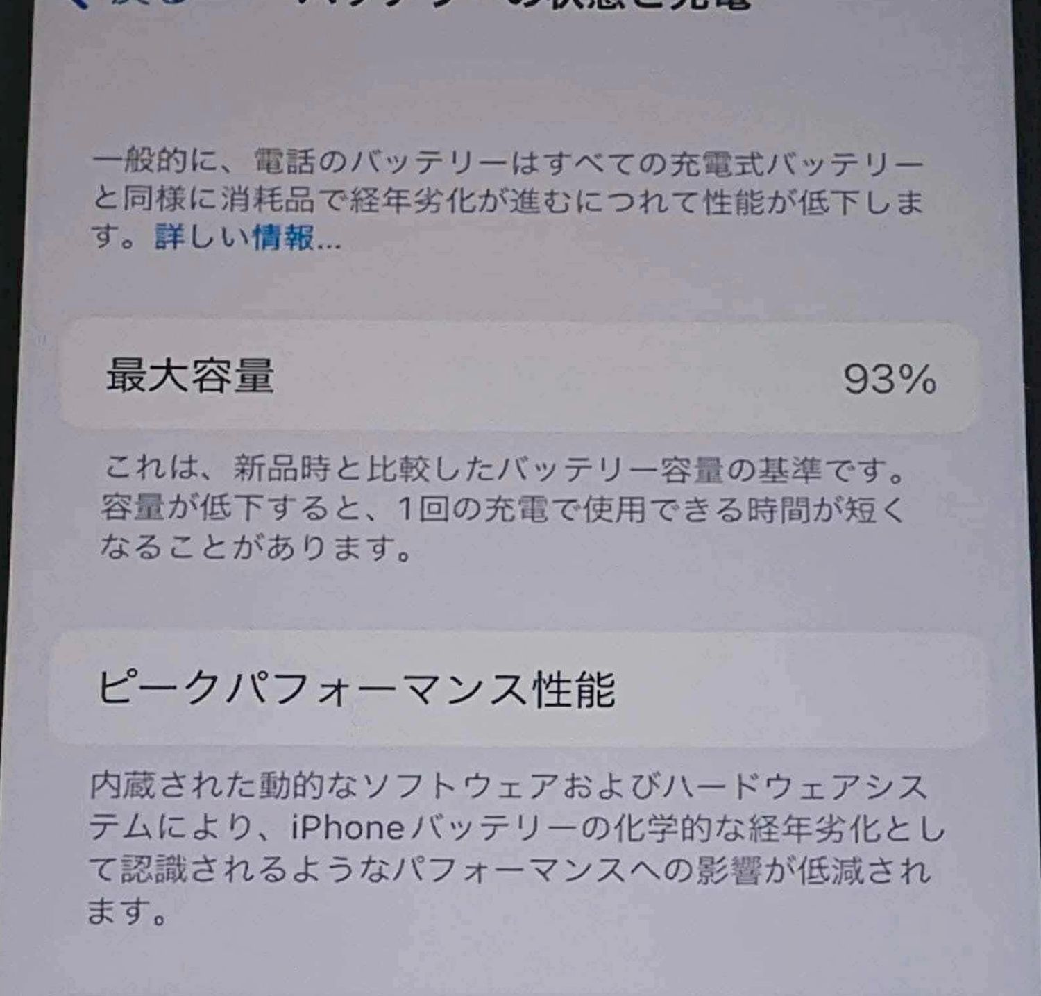 〇バッテリー:最大容量93%