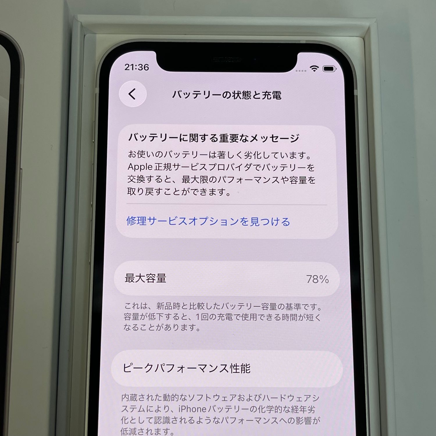 検品時のバッテリー最大容量は78%、myauにてSIMロック解除済みです。