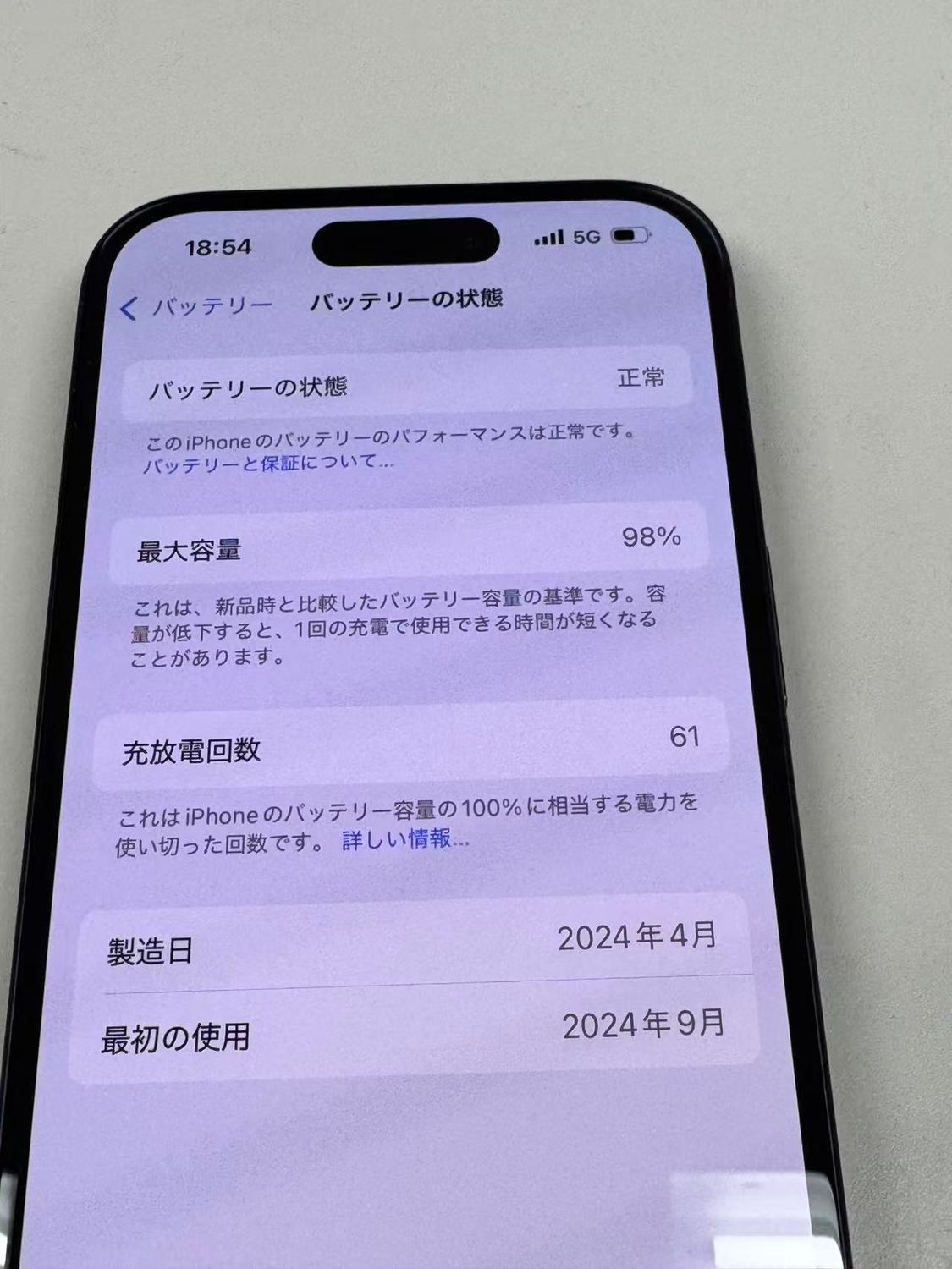 バッテリー最大容量表示:98%