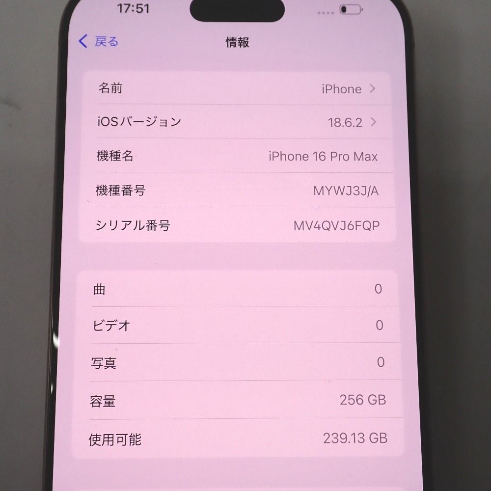 | 機種名 | iPhone16 Pro Max |