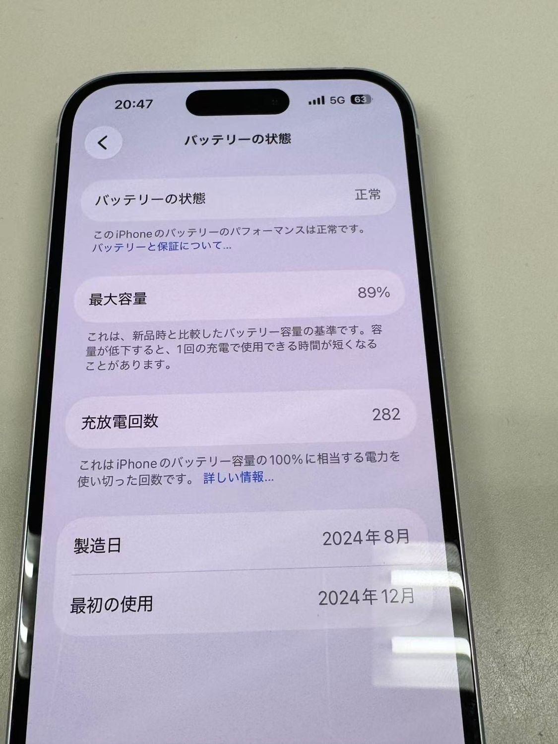 バッテリー最大容量表示:89%