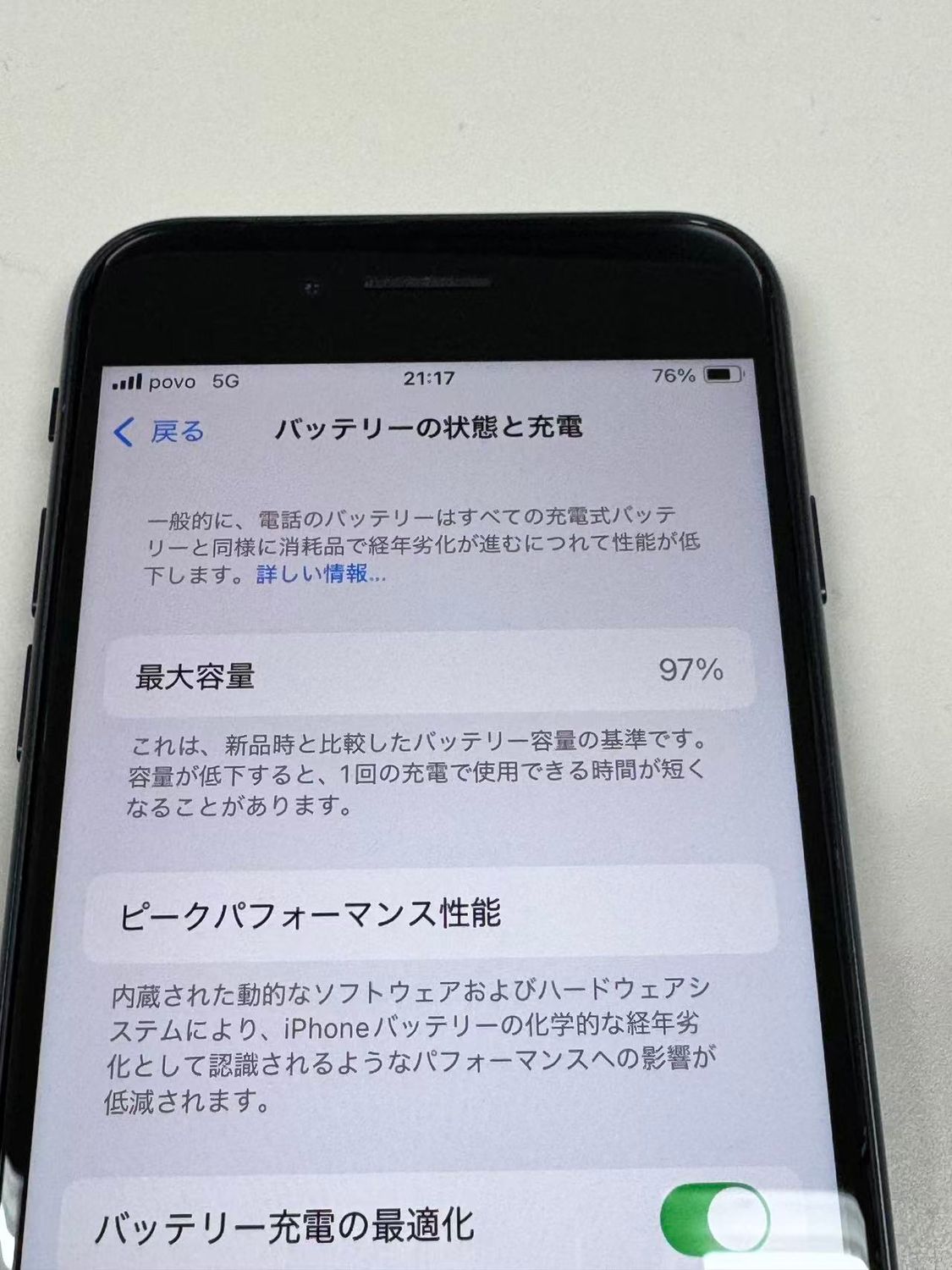 バッテリー最大容量表示:97%