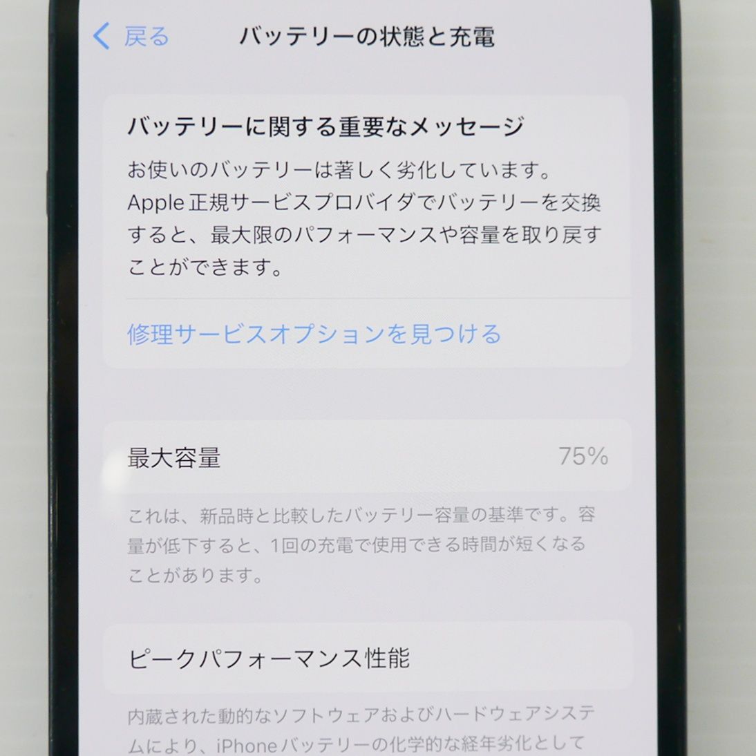 バッテリー最大容量:75%