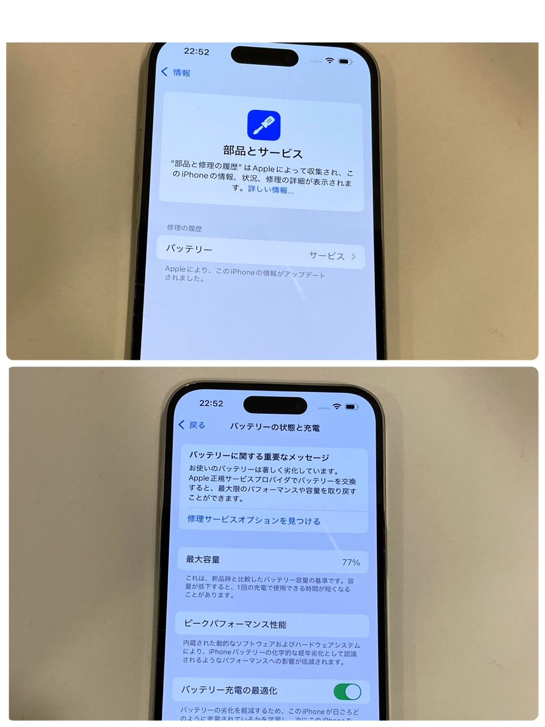 【バッテリーの状態】サービス(77%)(1/11時点)消耗品のため、保証できかねます