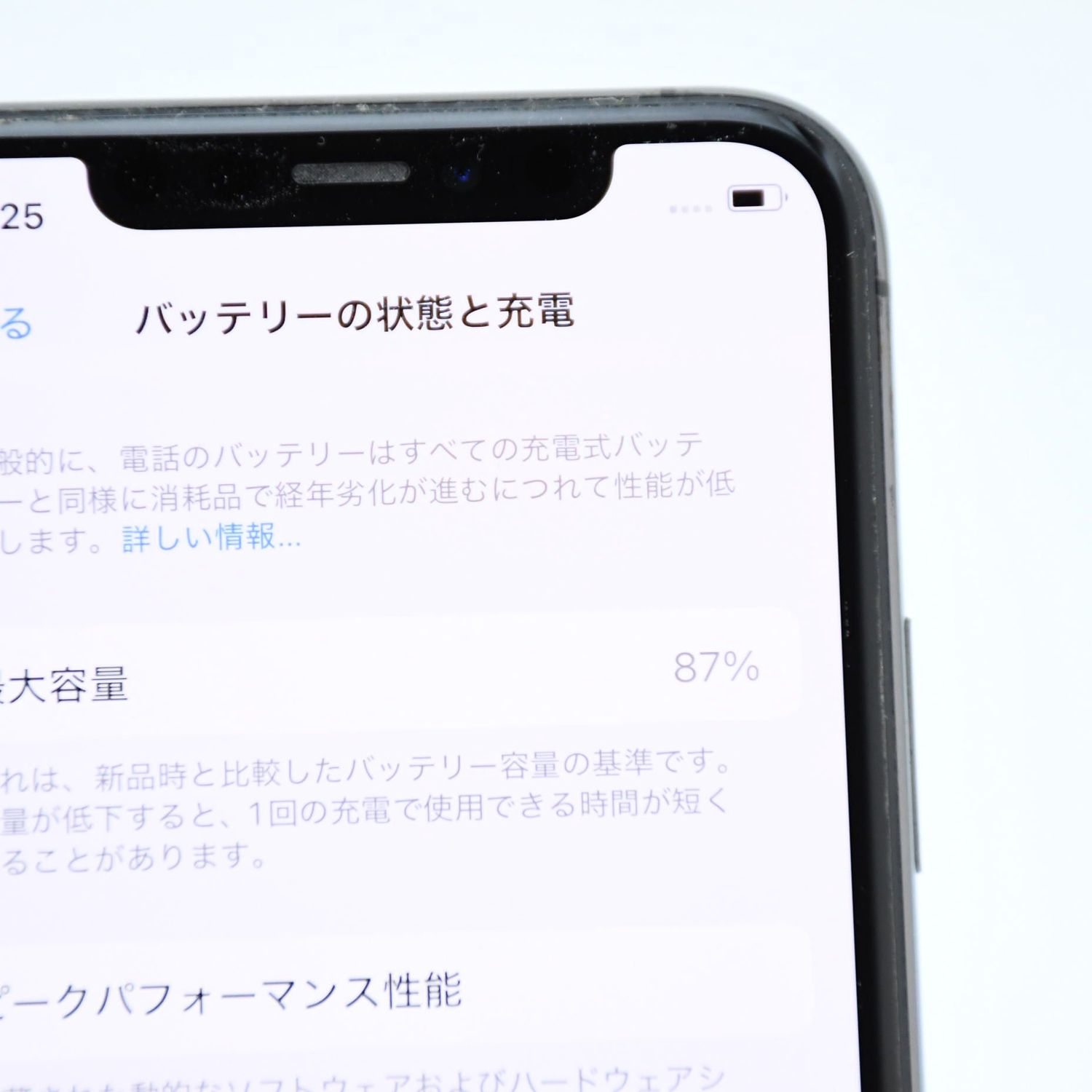 バッテリー最大容量 :100%中87%