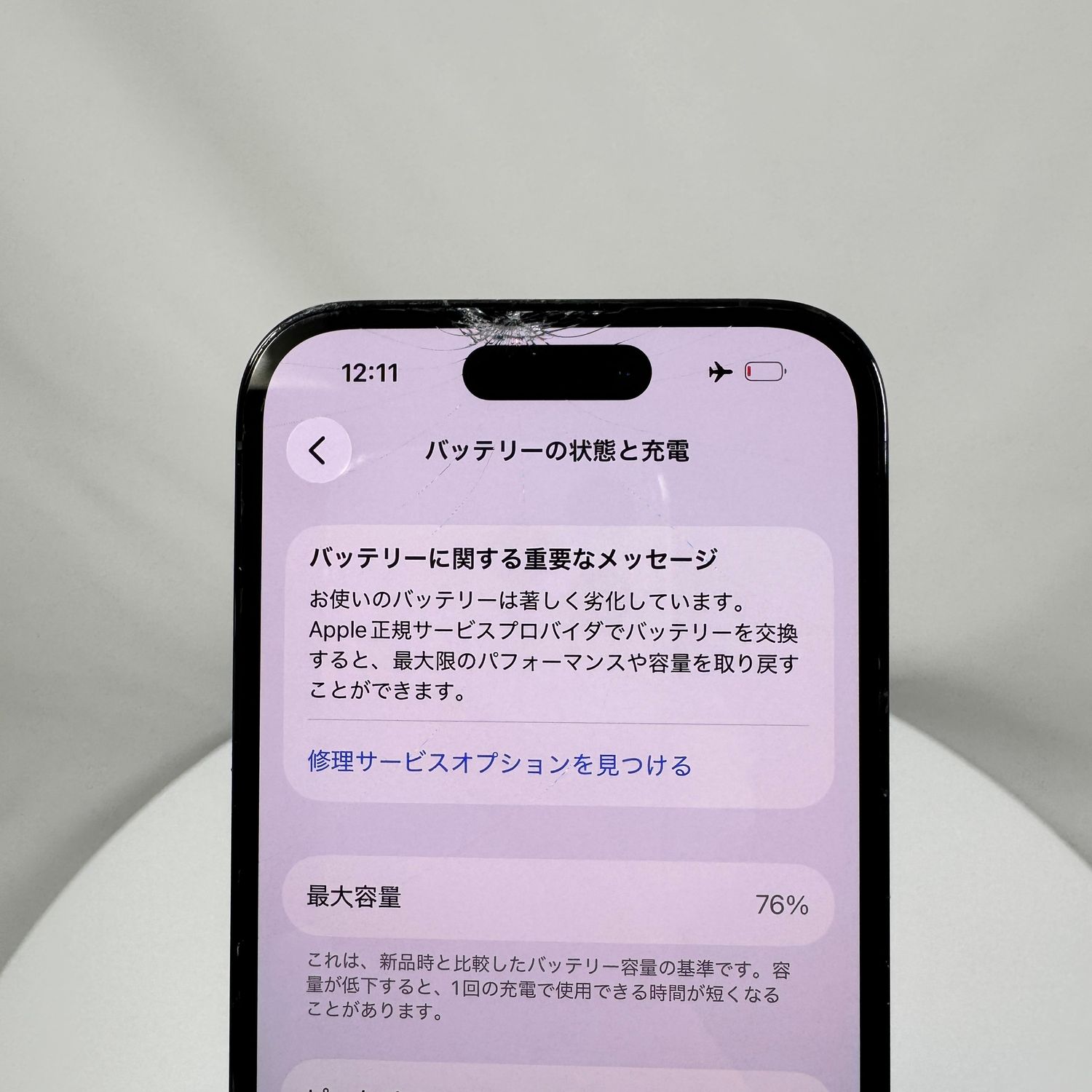 画面割れ。バッテリー修理サービス。