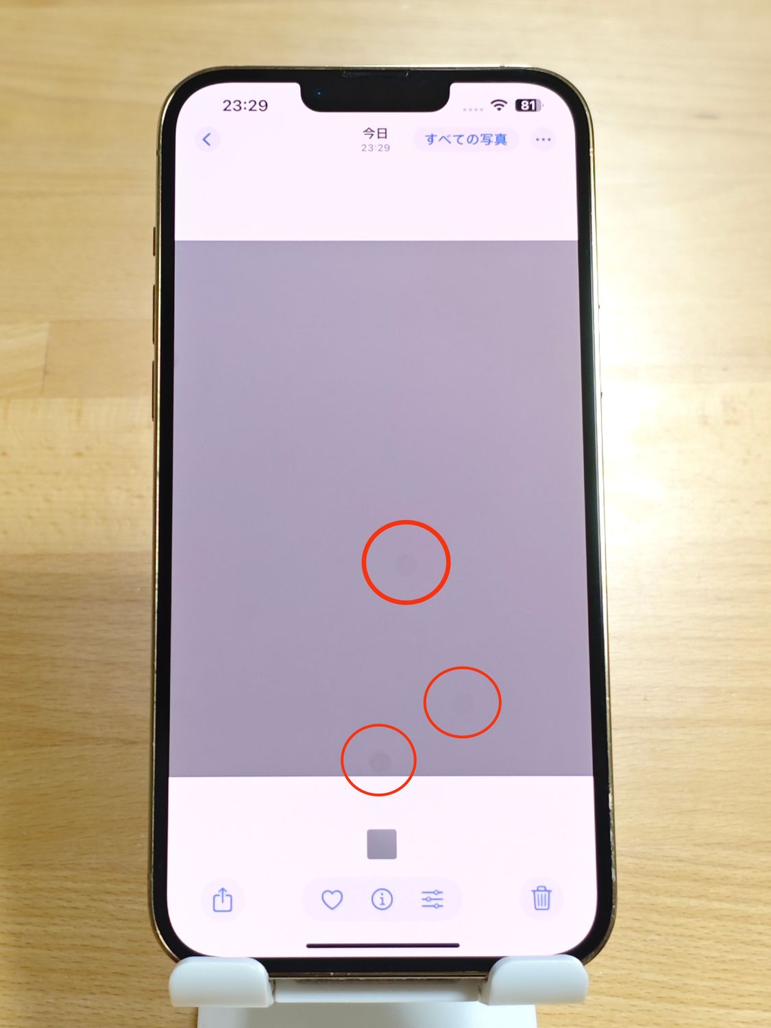 アウトカメラx3.0使用時に小さな薄い黒点あり。真っ白な紙を撮影すると分かるが、色味のある写真であれば気づかない程度。(写真にてご確認ください。)