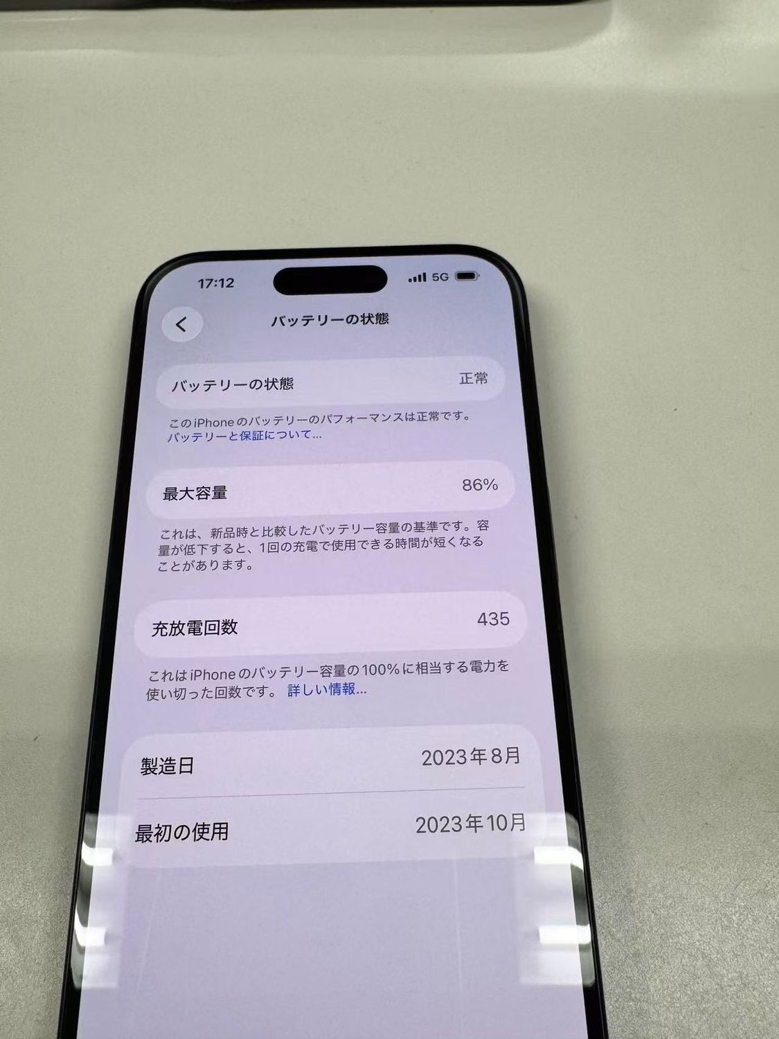 バッテリー最大容量表示:86%