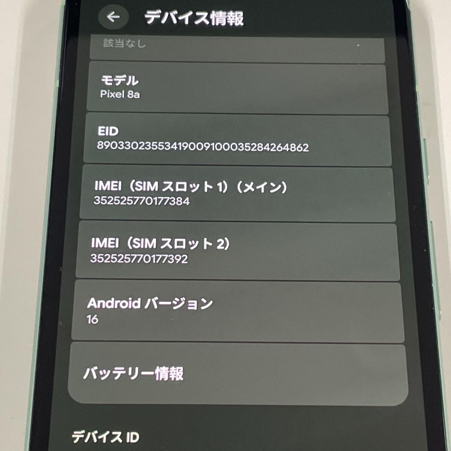 | IMEI番号 | 352525770177384 |