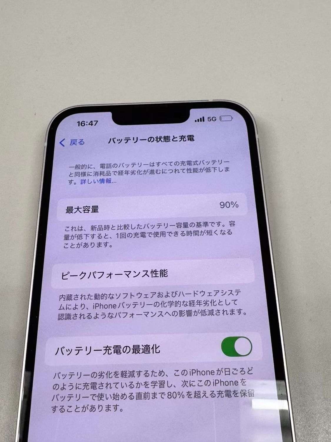 バッテリー最大容量表示:90%