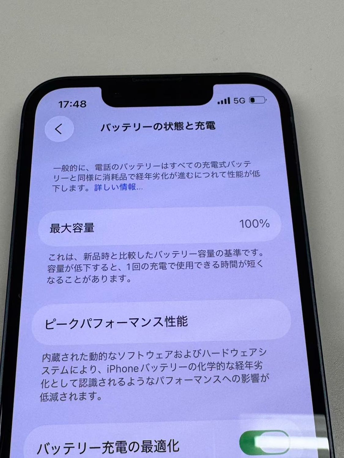 バッテリー最大容量表示:100%
