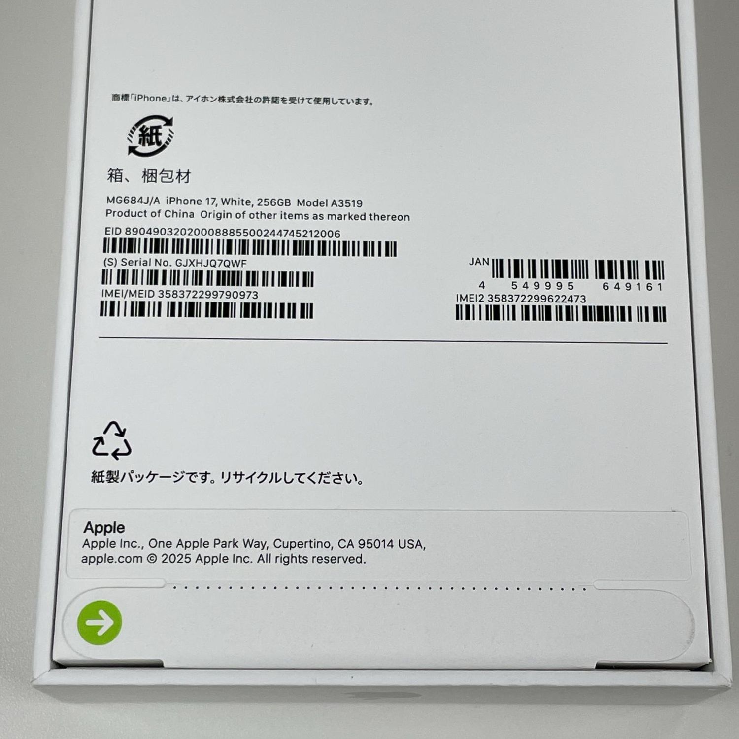 今日発送 iPhone 17 256GB ホワイト SIMロック解除済