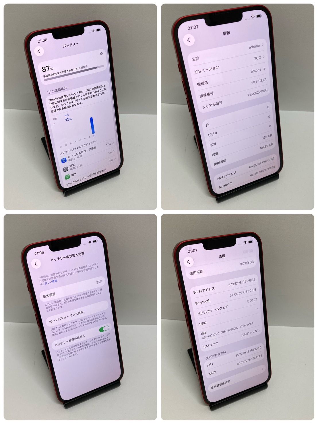 今日発送 美品・電池85% iPhone 13 128GB SIMフリー レッド ◆スピード発送◆3000