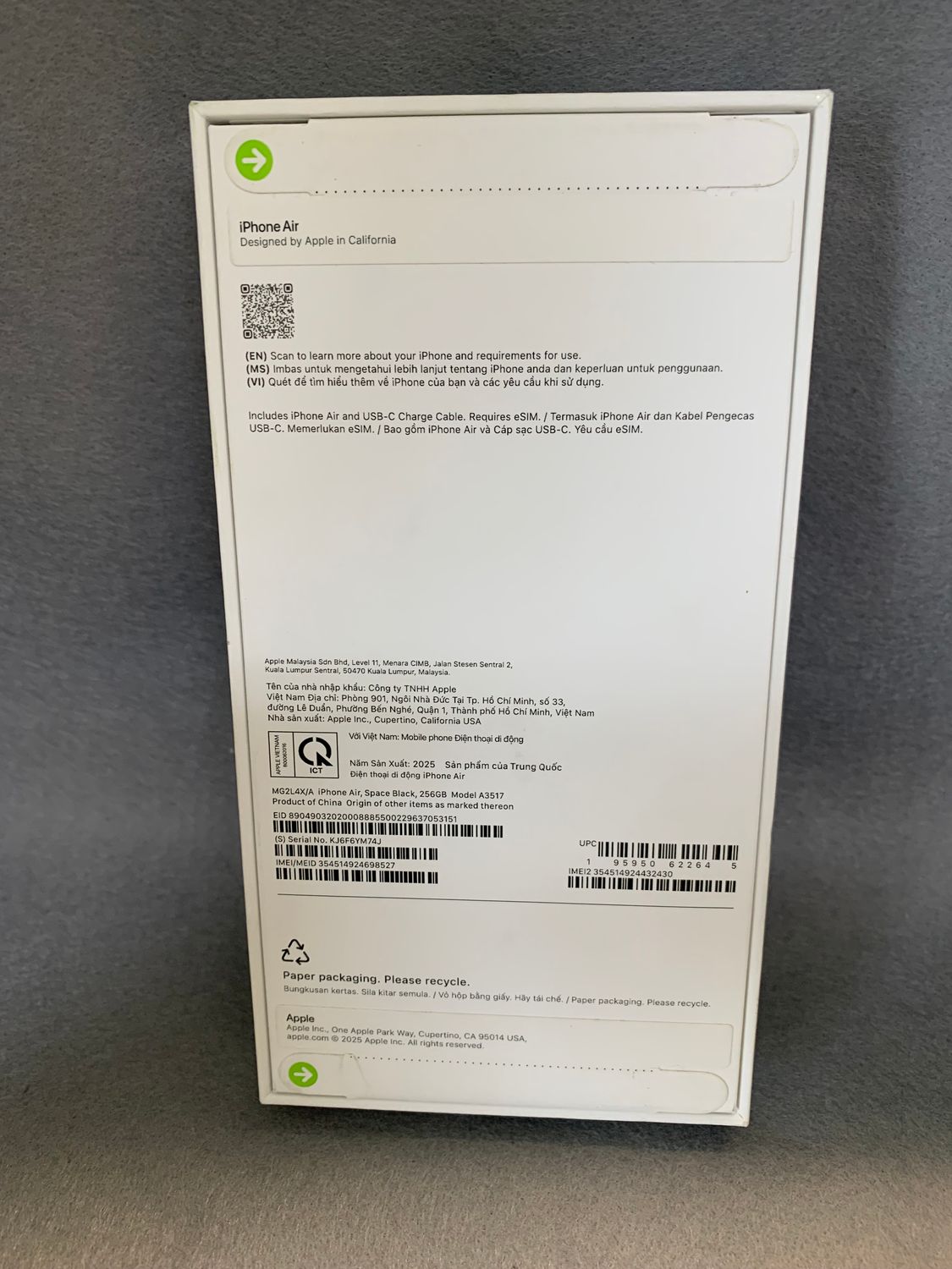 今日発送 新品未開封 海外版 SIMフリー iPhoneAir 256GB スペースブラック色
