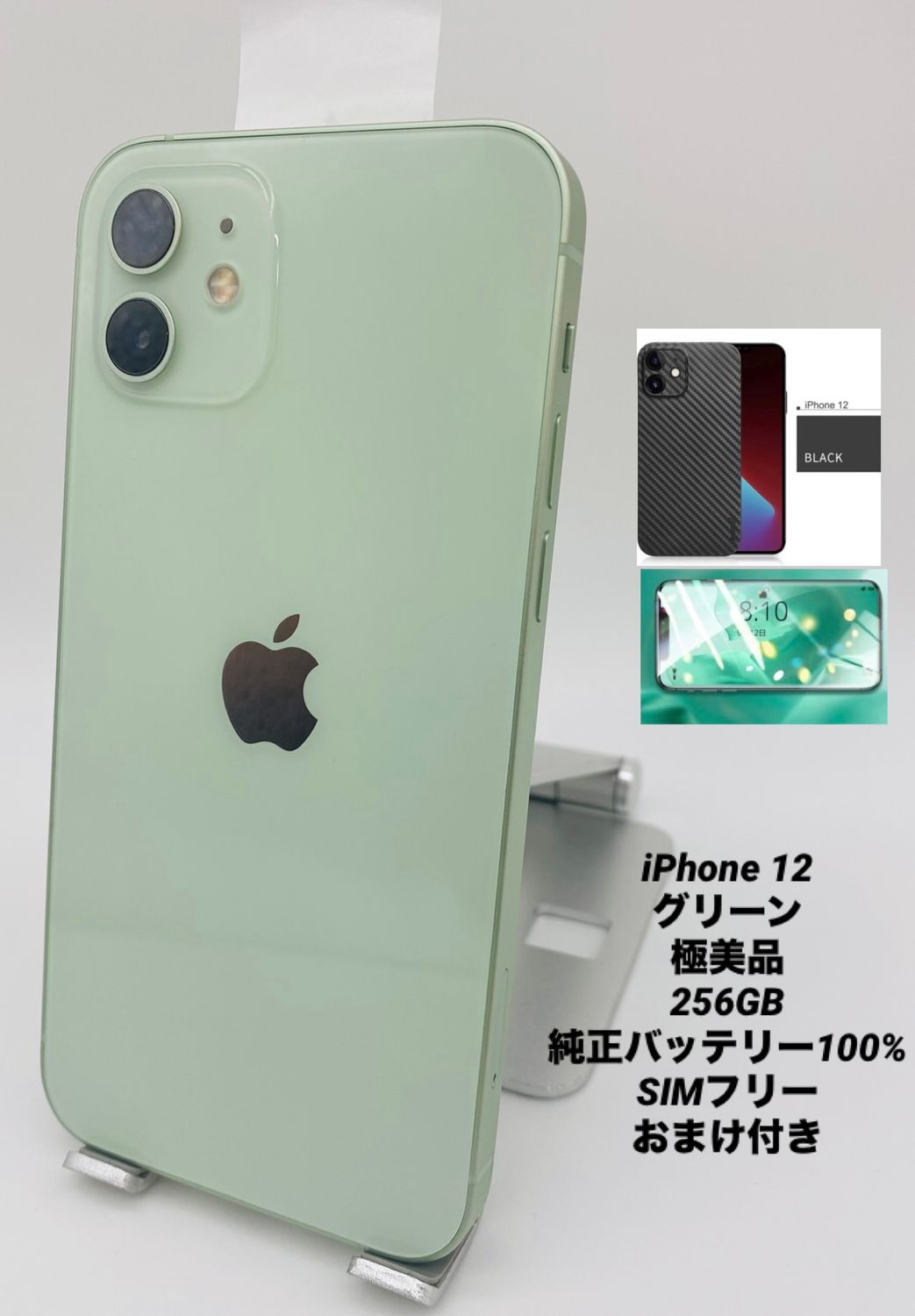 今日発送 078★美品★iPhone 12 256GB グリーン/純正バッテリー100%