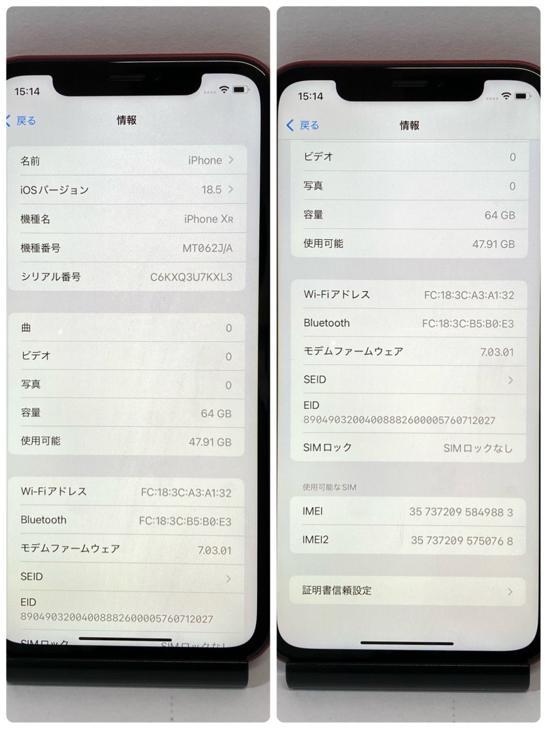| 機種名 | iPhone XR |