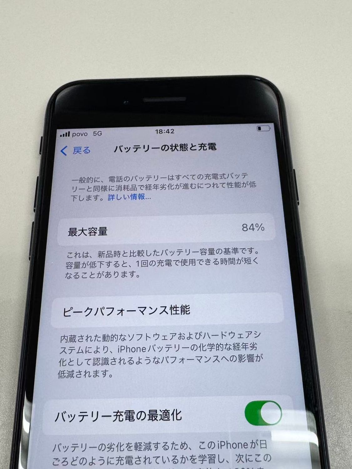 バッテリー最大容量表示:84%