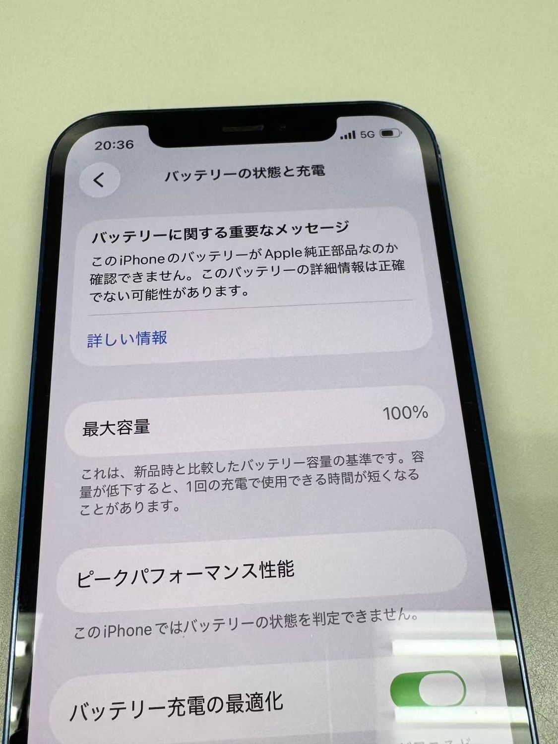 バッテリー最大容量表示:100%