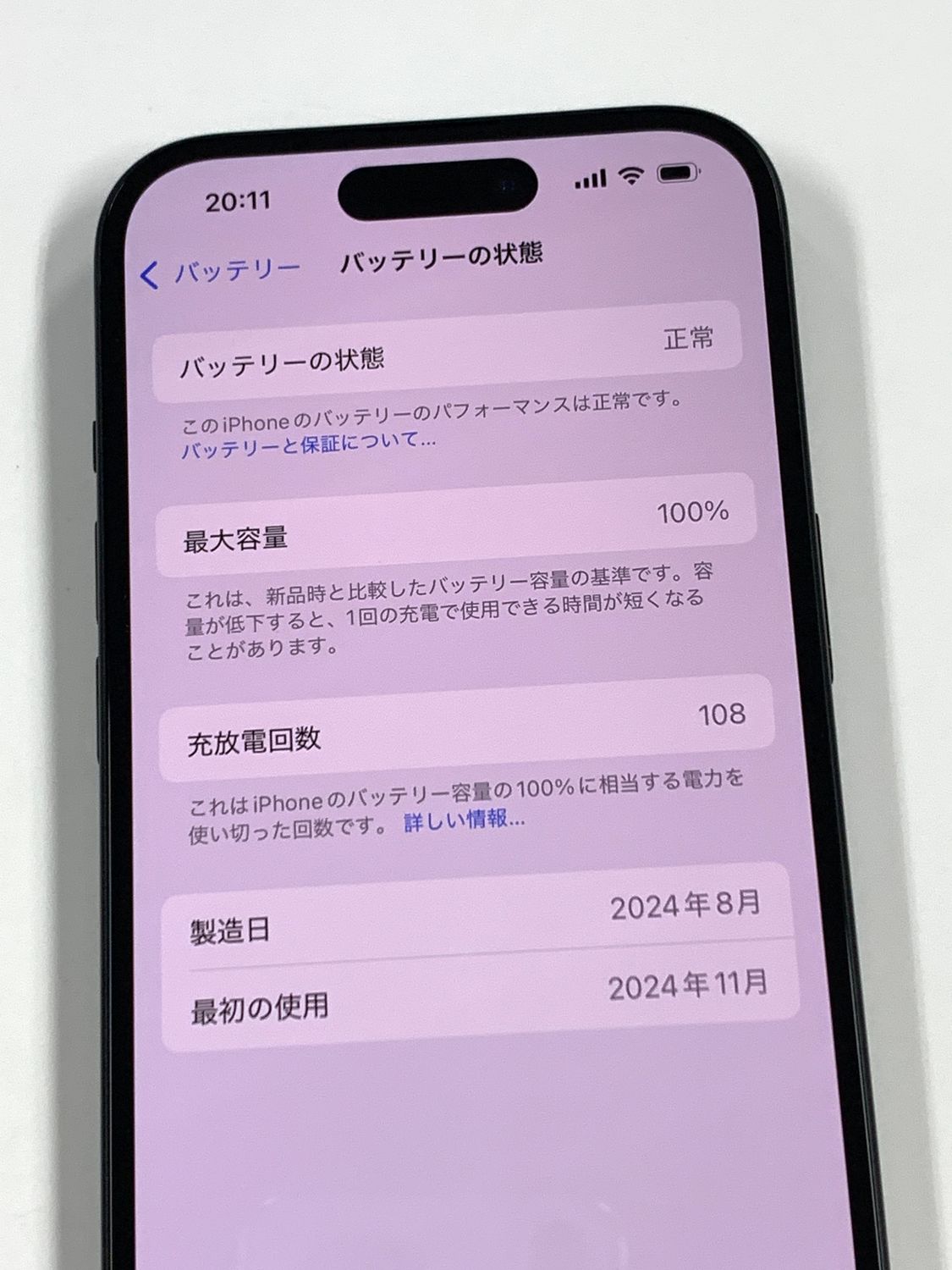バッテリー最大容量表示:100%