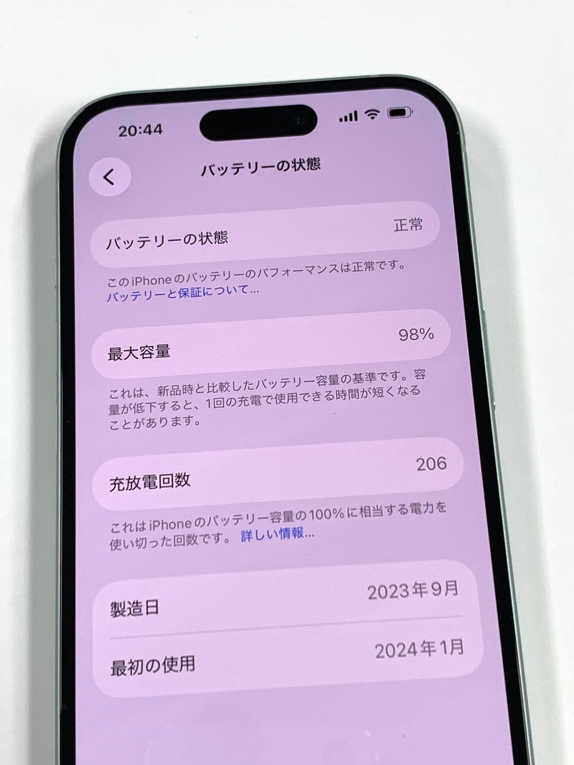 バッテリー最大容量表示:98%