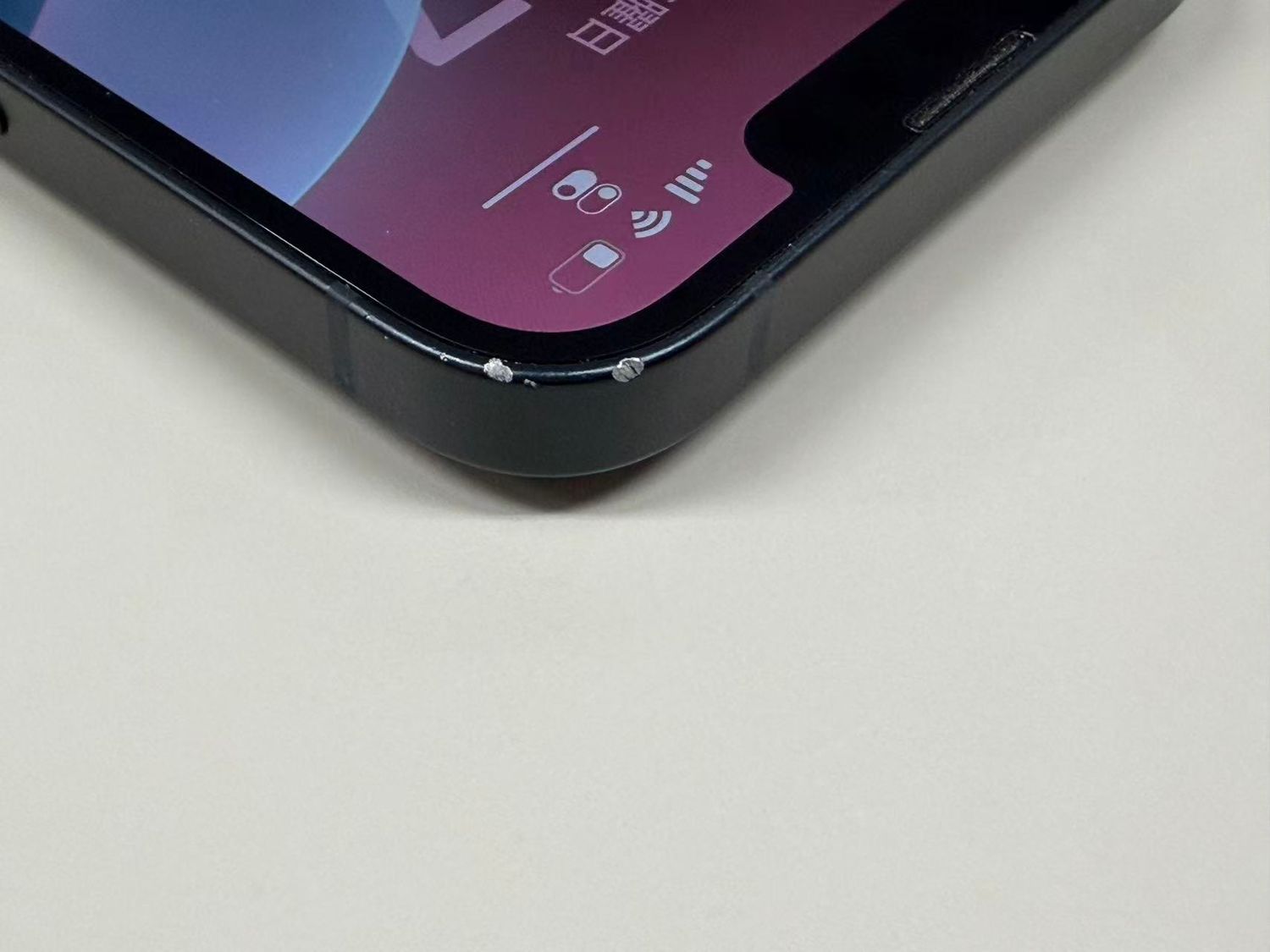 側面の右上に打痕傷があり、その他は薄い傷とケース跡があり、