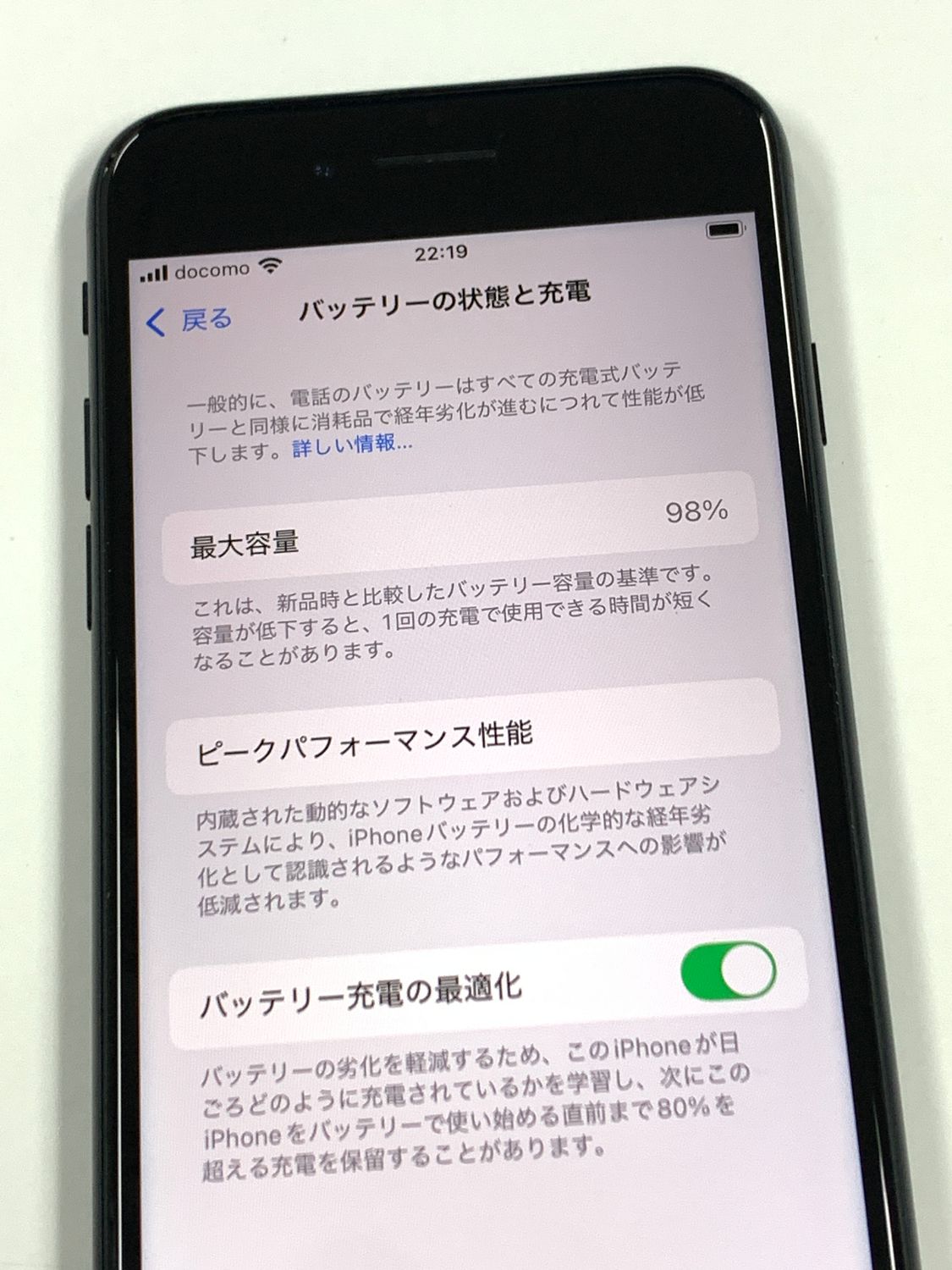 バッテリー最大容量表示:98%