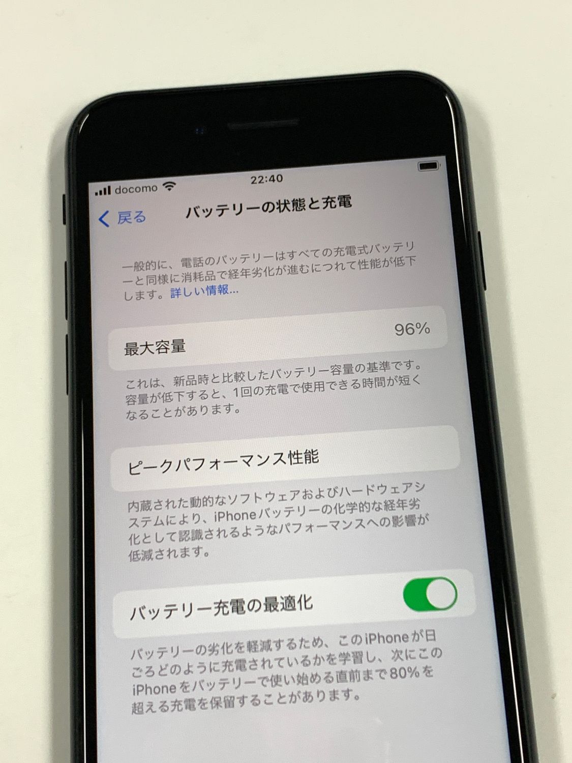 バッテリー最大容量表示:96%