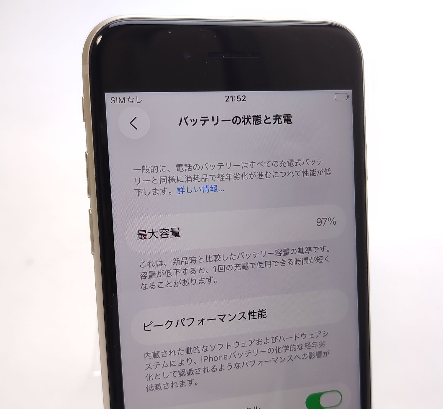 動作確認時のバッテリー性能表示97%(最大容量)