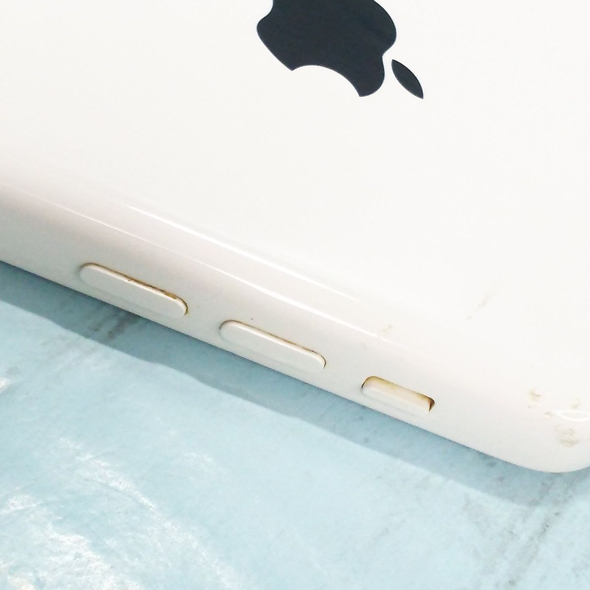 【液晶の状態】ホームボタンに剥がれがみられるほか、若干の擦り傷がみられます。また、縁を中心に色むらがみられますが、タッチ操作に影響はありません。