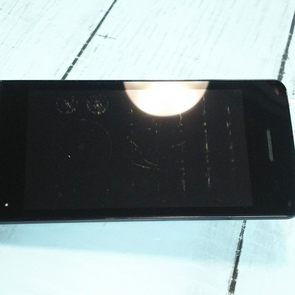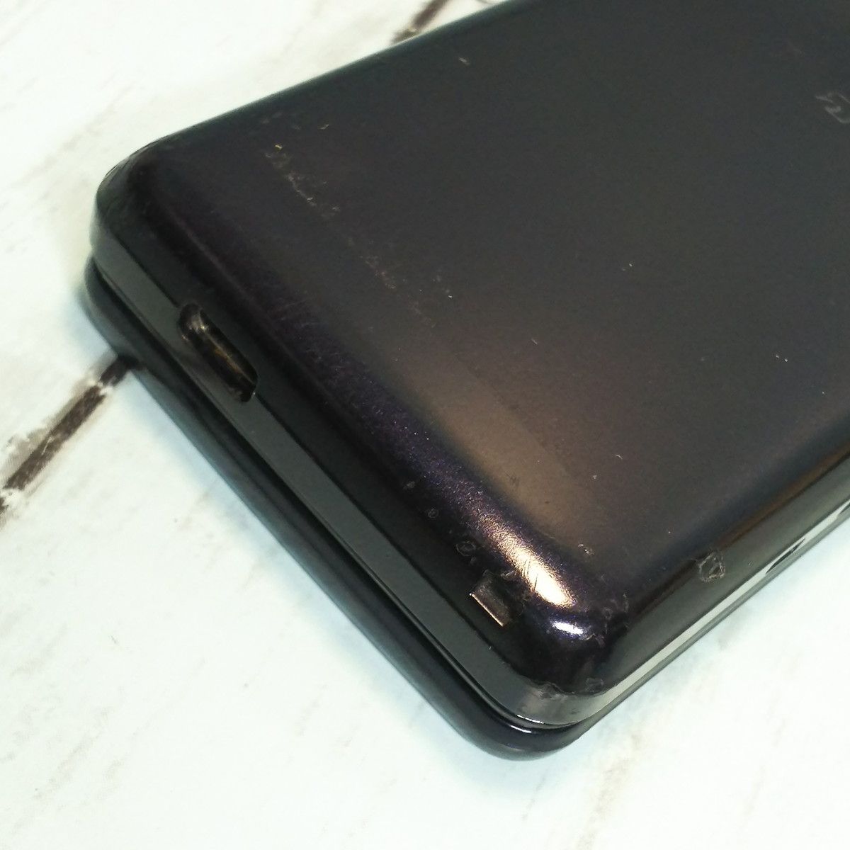 【液晶の状態】複数の擦り傷とボタン痕がみられますが、液晶ON時に目立つ傷・汚れはありません。