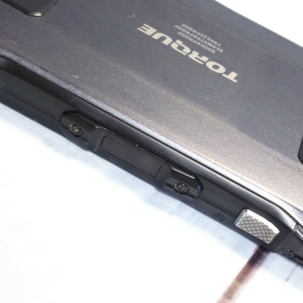 【本体の状態】ゴムカバーに浮きと欠損がみられます。また、縁と背面を中心に擦り傷、打痕、取り切れない汚れ等の使用感がみられますが、大きな傷や汚れはありません。