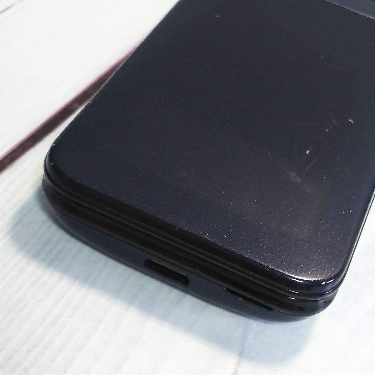 【液晶の状態】擦り傷とボタン痕がみられますが、液晶ON時に目立つ傷や汚れはありません。