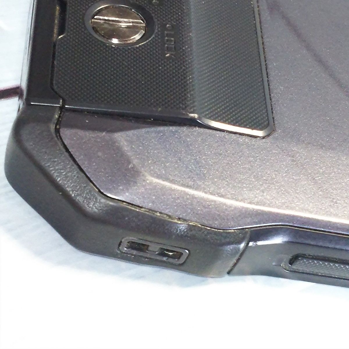 【本体の状態】ゴムカバーに浮きが見られます。また、縁・背面を中心に擦り傷・打痕等がみられますが、大きな傷や汚れはありません。