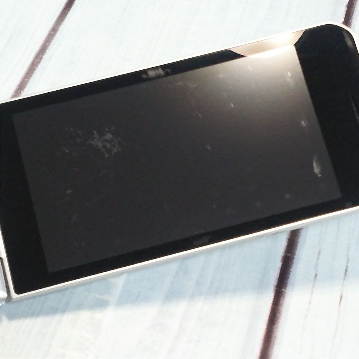 【液晶の状態】擦り傷と色むら、内部汚れがみられますが、液晶ON時にあまりにも目立つ傷や汚れはありません。