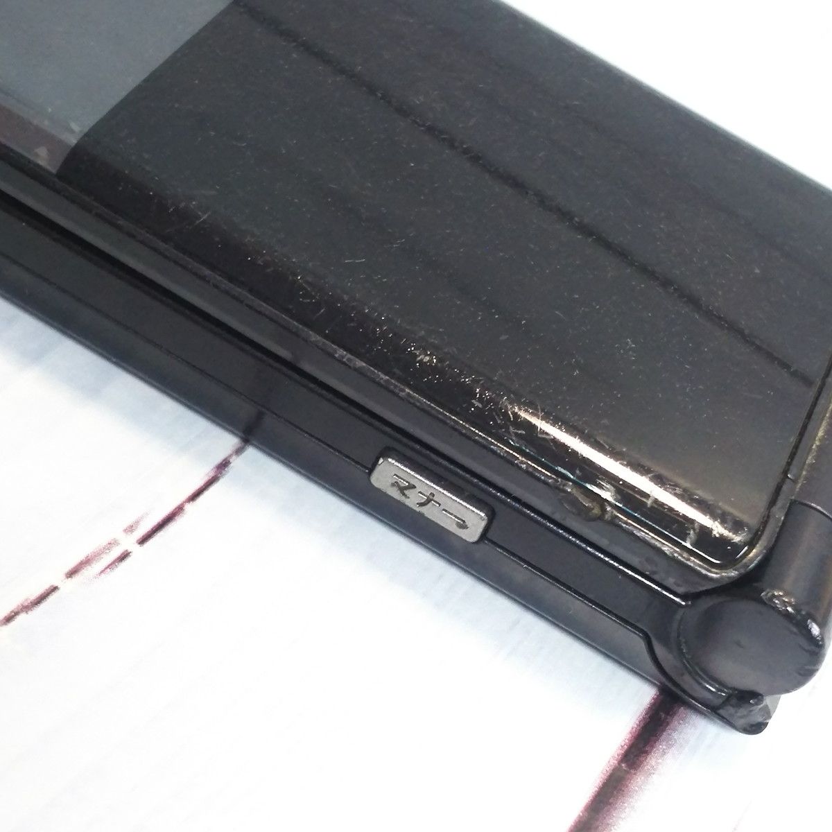【液晶の状態】擦り傷とボタン痕、内部汚れ、若干の色むらがみられますが、液晶ON時にあまりにも目立つ傷や汚れはありません。